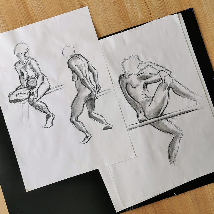 I couldn’t resist signing up for a life figure drawing class in Bern. I hope to improve my anatomy and figure drawing skills and translate them to drawing comics. Additionally, I want to focus on light and shadow on the human form.