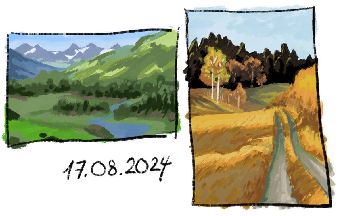 The roughness of these studies is intentional, as the goal is not to paint in detail and with 100% accuracy, but to learn how to pick color and about the range of colors that occur in the same image/scenery (which is absolutely fascinating).